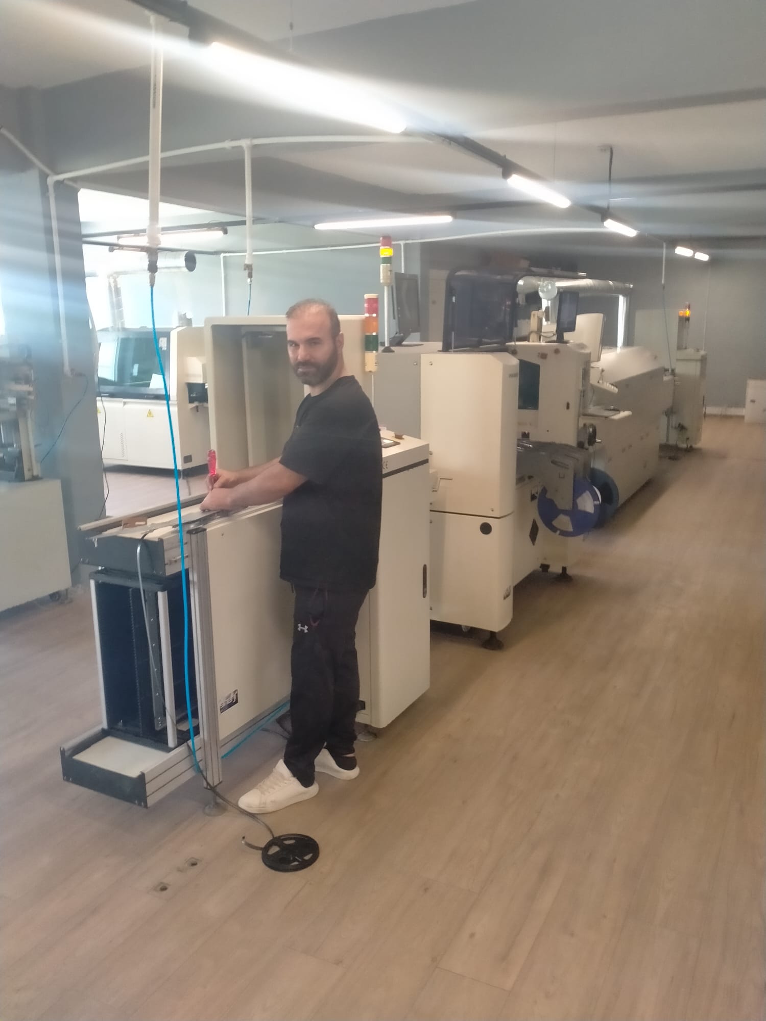 PICK AND PLACE (SMD DİZGİ MAKİNASI): P&P makinalarımız ile baskılı devre kartları üzerine uygun koordinatlarda, uygun açı ve yükseklik ile saatte 40.000 komponent dizgisi yapabilmekteyiz.