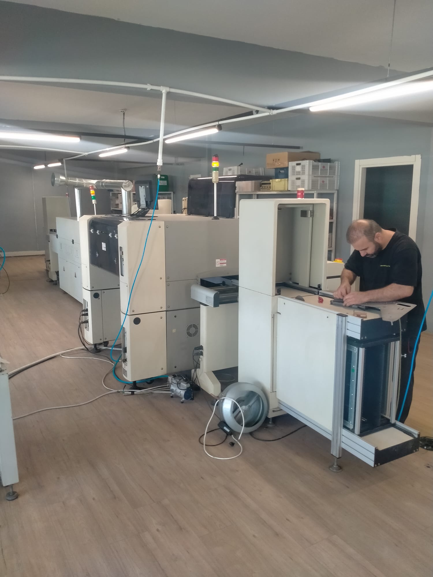 SOLDER PASTE (PRINTER): Tam otomatik screen printer makinamız her baskılı devre kartı için özel olarak üretilmiş stencil (elek) kullanarak elektronik kart üzerine krem lehim sürme işlemi gerçekleştirilmektedir. Üretim prosesimiz çerçeveli veya çerçevesiz (ZelFlex) elek yapısına uygundur. Dizgide müşteri talebine göre kurşunlu, kurşunsuz lehimleme işlemlerinin yanı sıra yapıştırma (glue) olarak da gerçekleştirilebilmektedir.