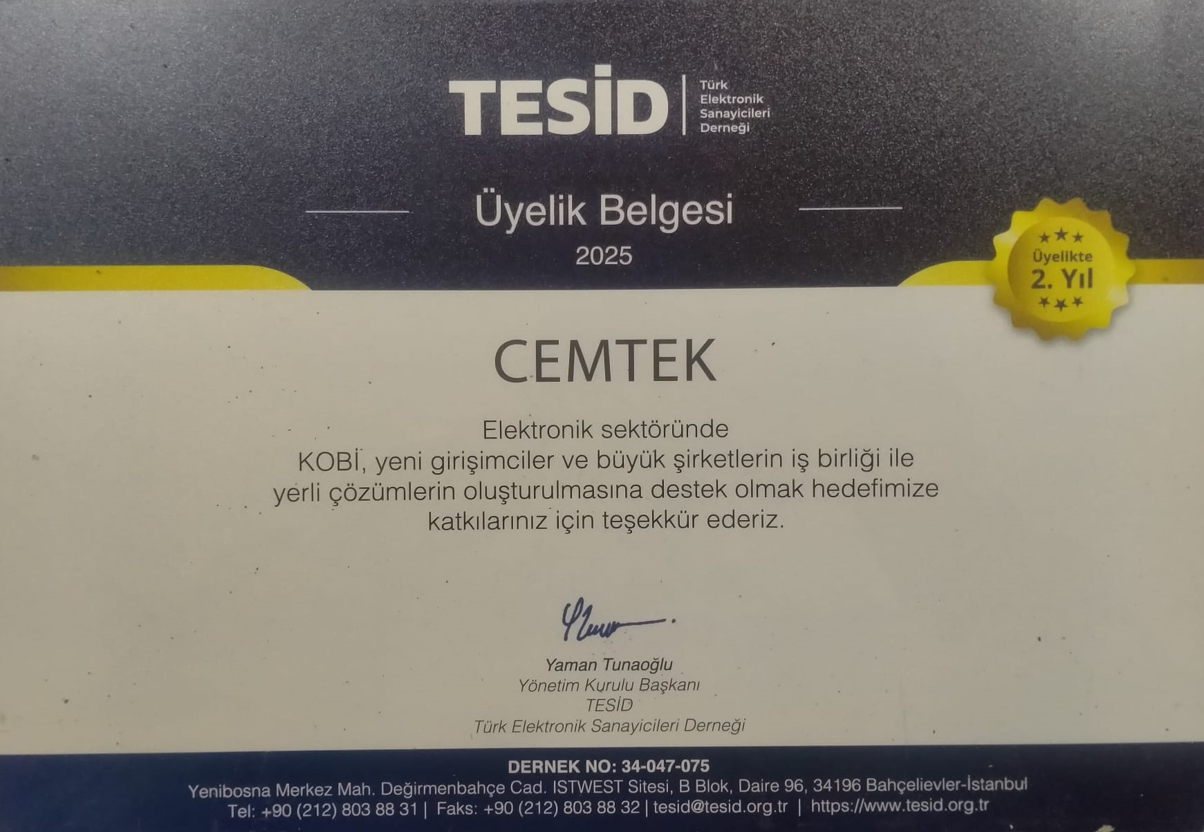 CEMTEK MÜHENDİSLİK A.Ş. aynı zamanda TESİD Üyesidir. https://tesid.org.tr